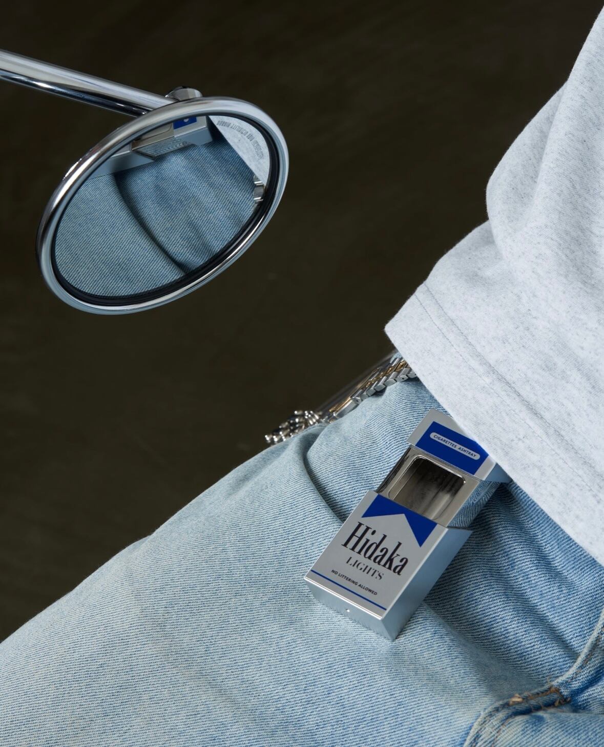 Marlboroのパッケージをサンプリングした携帯灰皿。カラビナを上に引き上げることで開閉可能です。携帯灰皿やピルケースとしてお使いいただけます。