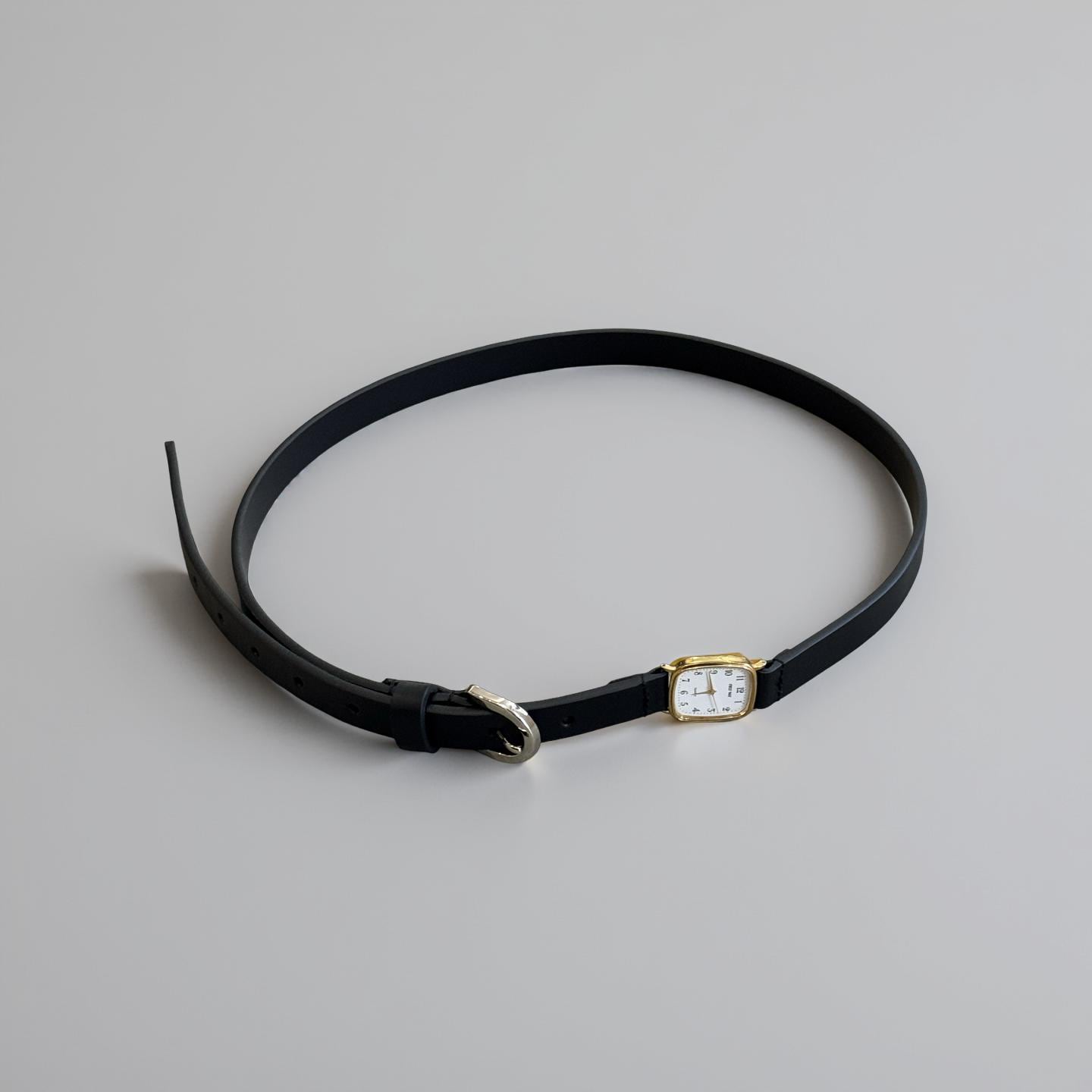 ヴィンテージの壊れた時計を再利用した、腕時計が肥大化したようなレザーベルト。時計本来の価値である機能が失われ行き場を失ったジャンク品をマテリアルとして選択することで新たな価値へアプローチしています。