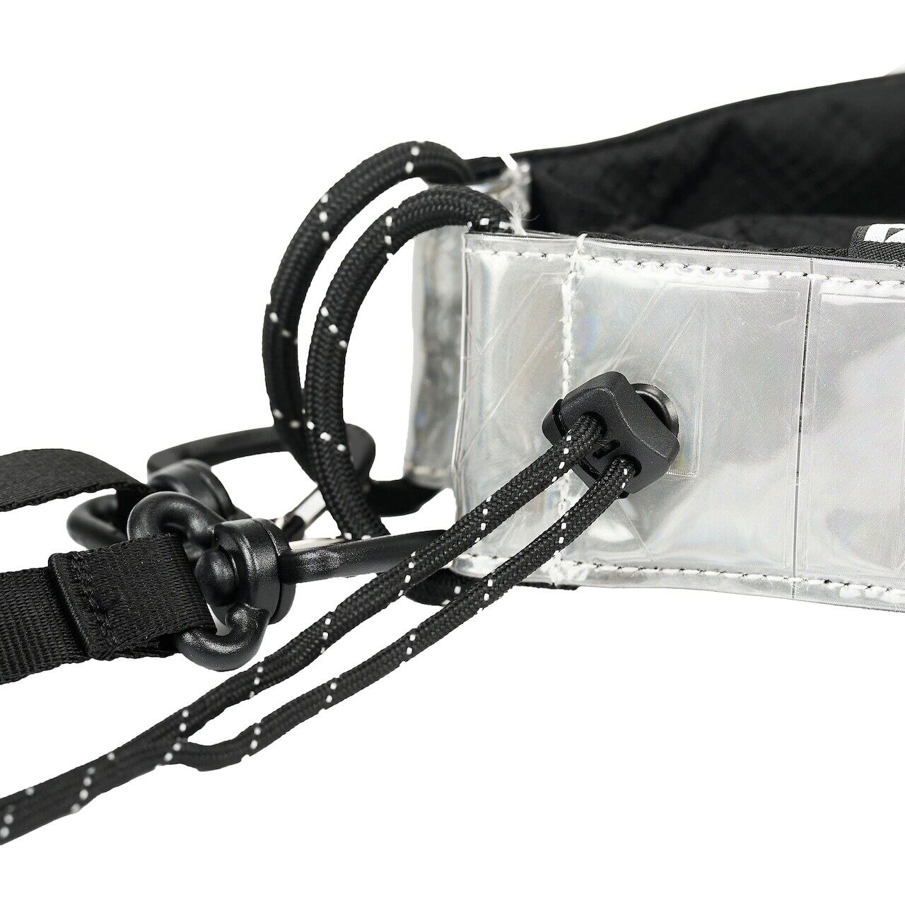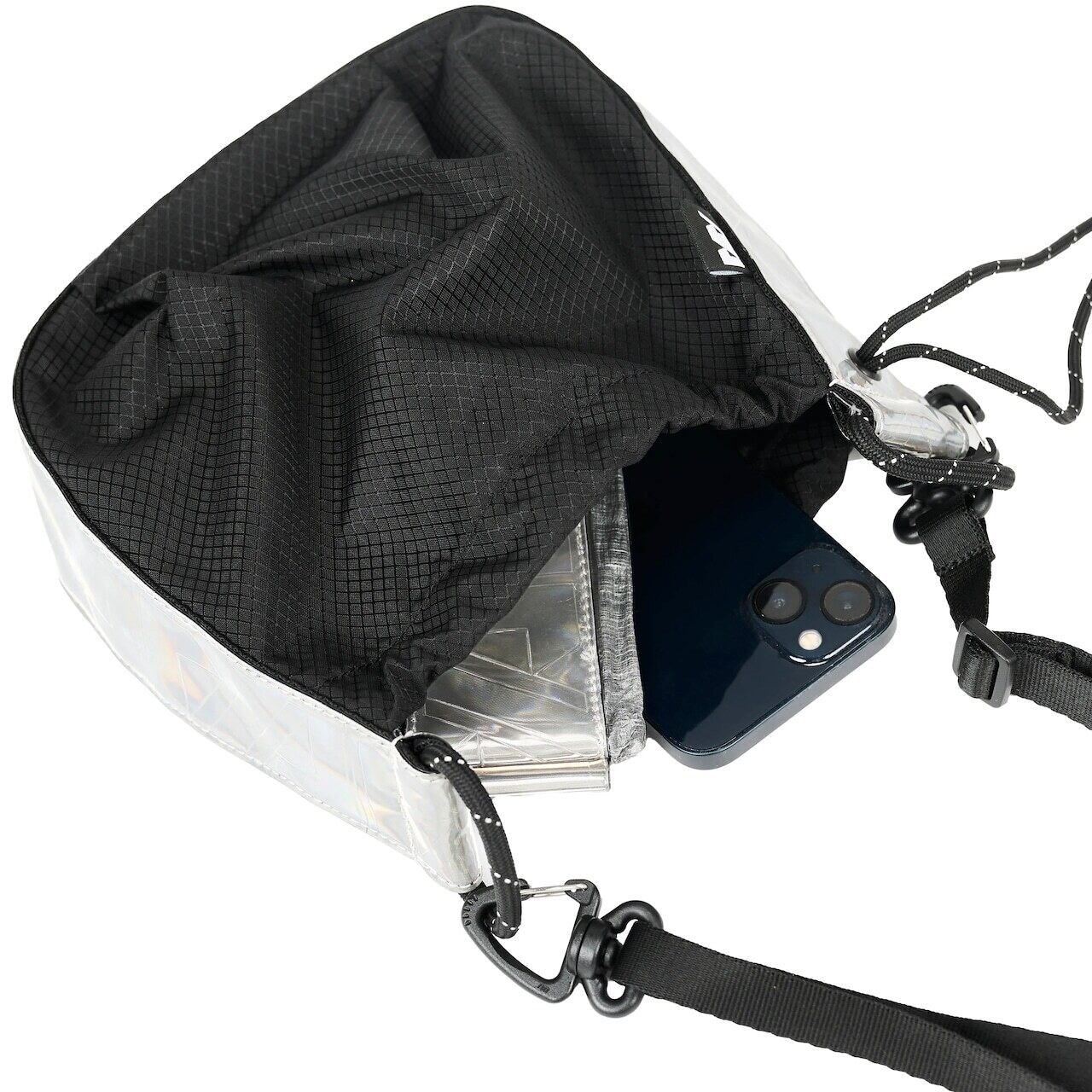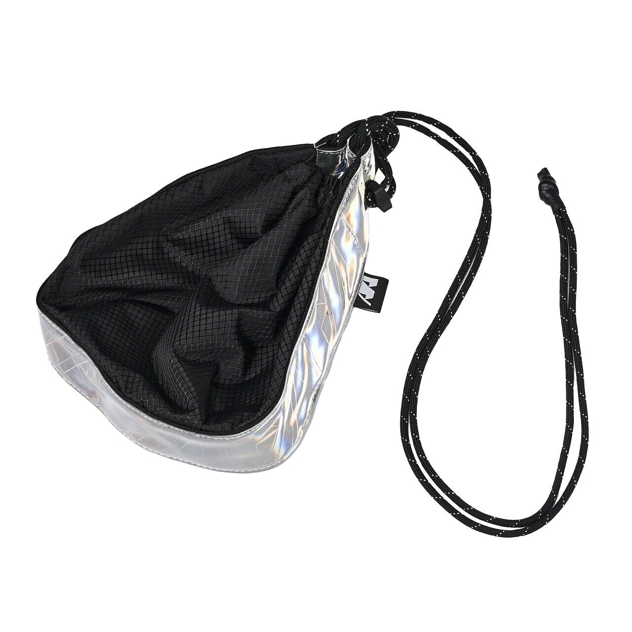 コードを絞って雫型の巾着のように持ったり、コードを反対側のキーホルダーに引っ掛けて短めの持ち手にしたり、ショルダーベルトで斜めがけにと、ストラップやコードのアレンジによって3WAYの持ち方が楽しめるポーチ。ナイロン210デニールの高強度リップストップ生地を使用。ポリウレタン(PU)コーティングを施した耐久性のある素材で、優れた強度、耐摩耗性、耐引裂性を示します。PUコーティングにより、水を弾くのでさまざまな用途に適しています。マチ部分には50mm幅のリフレクターテープを配置。夜道の安全を確保すると同時に昼間とは印象をガラッと変えてくれる要素です。