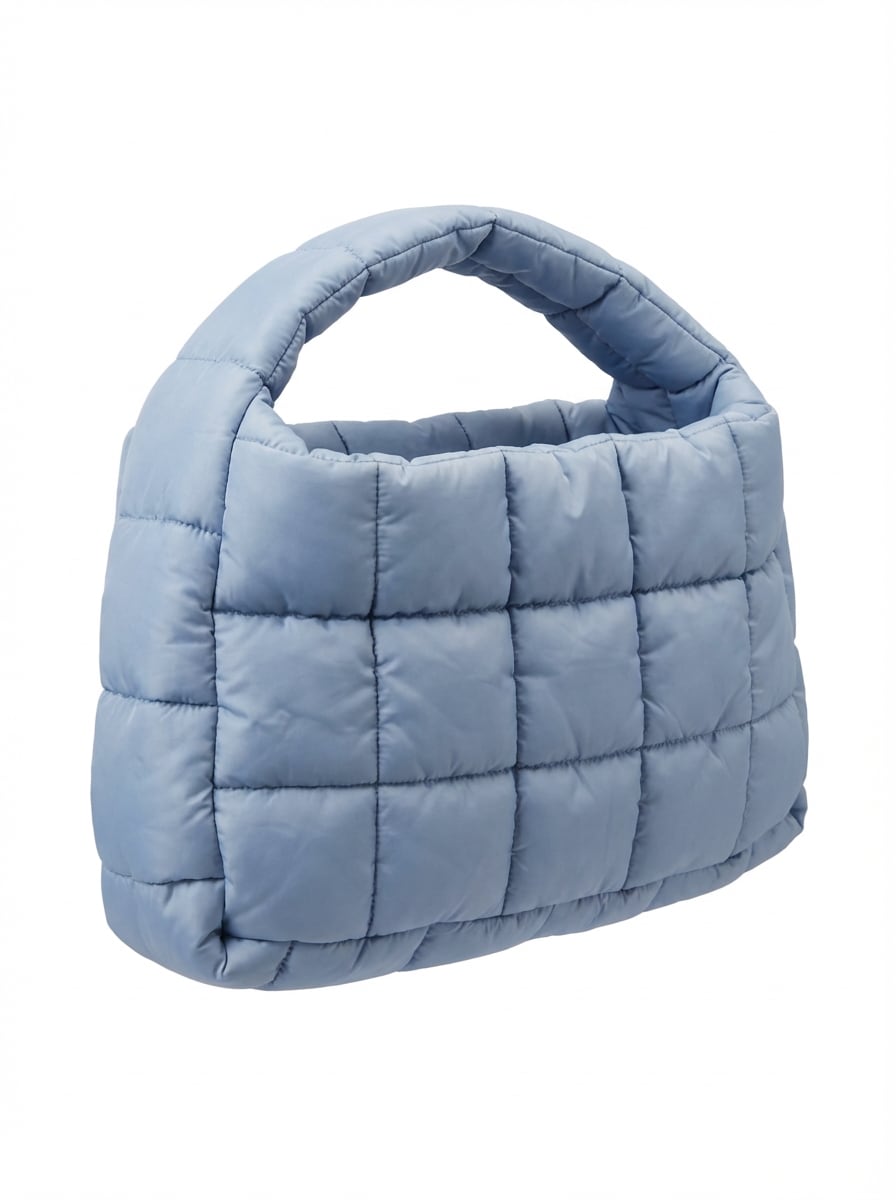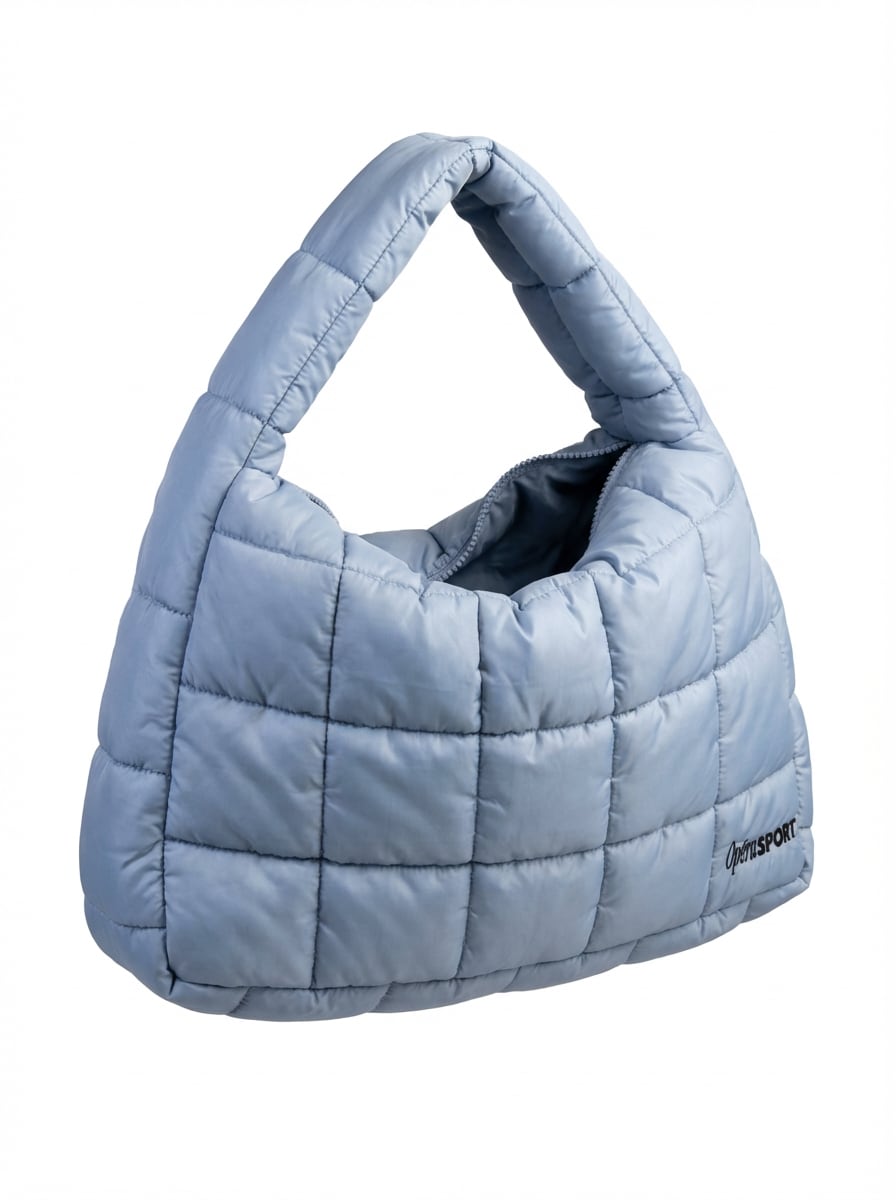 光沢のあるキルティング100%リサイクルポリエステル生地のショルダーバッグ又はハンドバッグ。